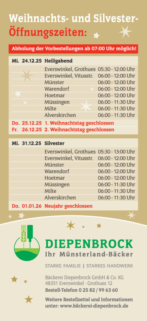 Wir bieten Genussmomente für Ihre Feier – ob Betriebsfest, Meeting, Jubiläum oder private Veranstaltung. Mit Diepenbrocks „Brotzeit“ servieren Sie eine köstliche Alternative zum klassischen Buffet. Freuen Sie sich auf handwerkliche Mini-Kreationen zum Gläschen Sekt, unser beliebtes Partybrot mit Gemüse zum Grillbuffet oder unsere begehrte Riesenbrezel zum Teilen – immer frisch, immer besonders, immer ein Highlight.